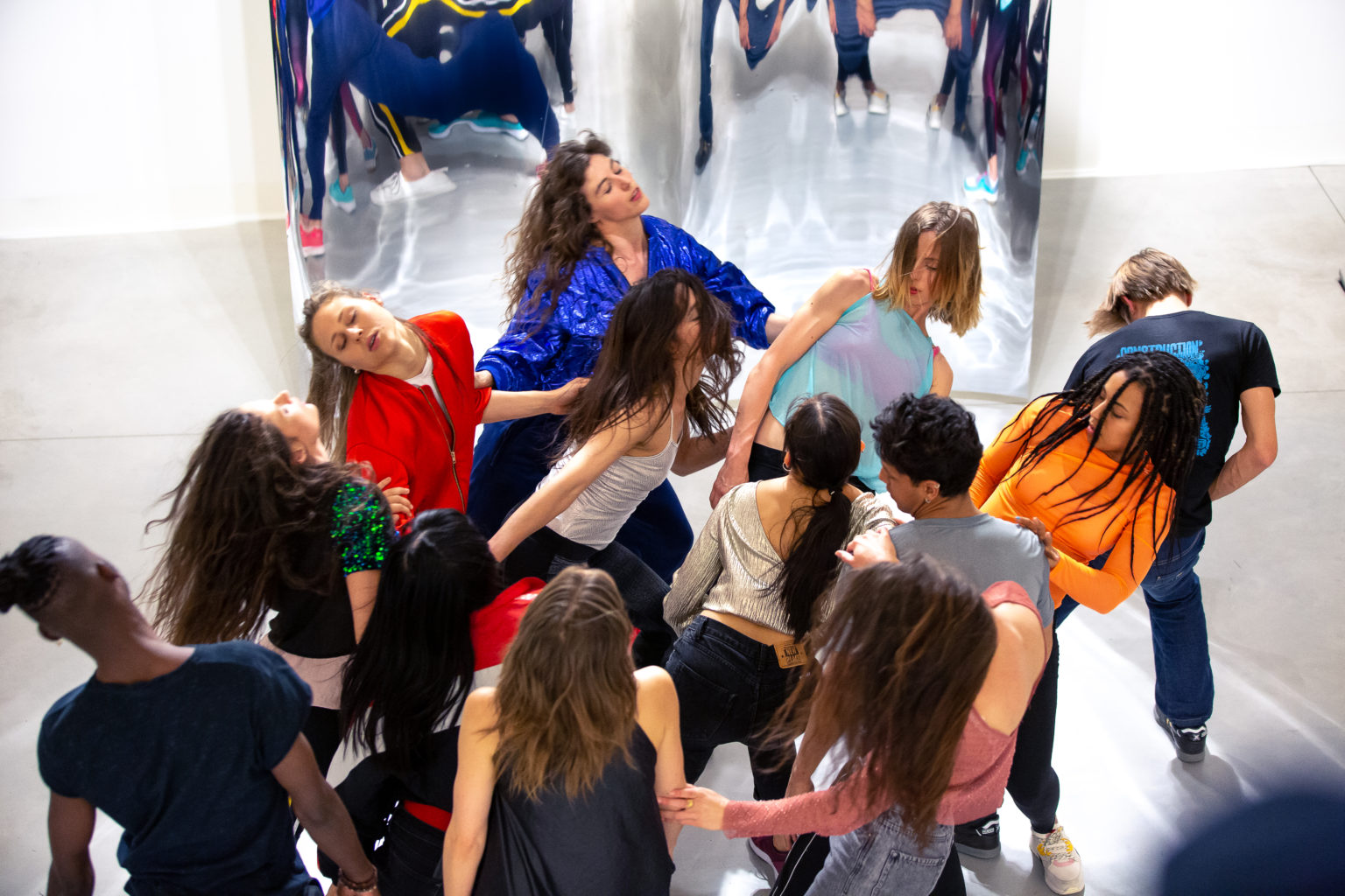 Un groupe de danseurs/performers se relaient, dans une épreuve d’endurance, physique, rythmique et envoûtante, exécutent et transforment une série de danses existantes, transe dansées issues de la culture pop.